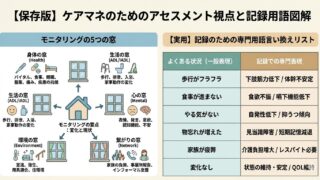 ケアマネ【ケアマネ必見】実地指導も怖くない!モニタリング訪問記録の書き方・文例集 ケアマネジャーの業務の中で、毎月の「モニタリング訪問」は最も重要な法定業務の一つです。しかし、移動と面談に追われ、記録が後回しになっていませんか? 「特段の変化なし」と書いてしまいそうな時こそ、ケアプランのPDCAサイクルを意識した記述が... 2026.02.23ケアマネ